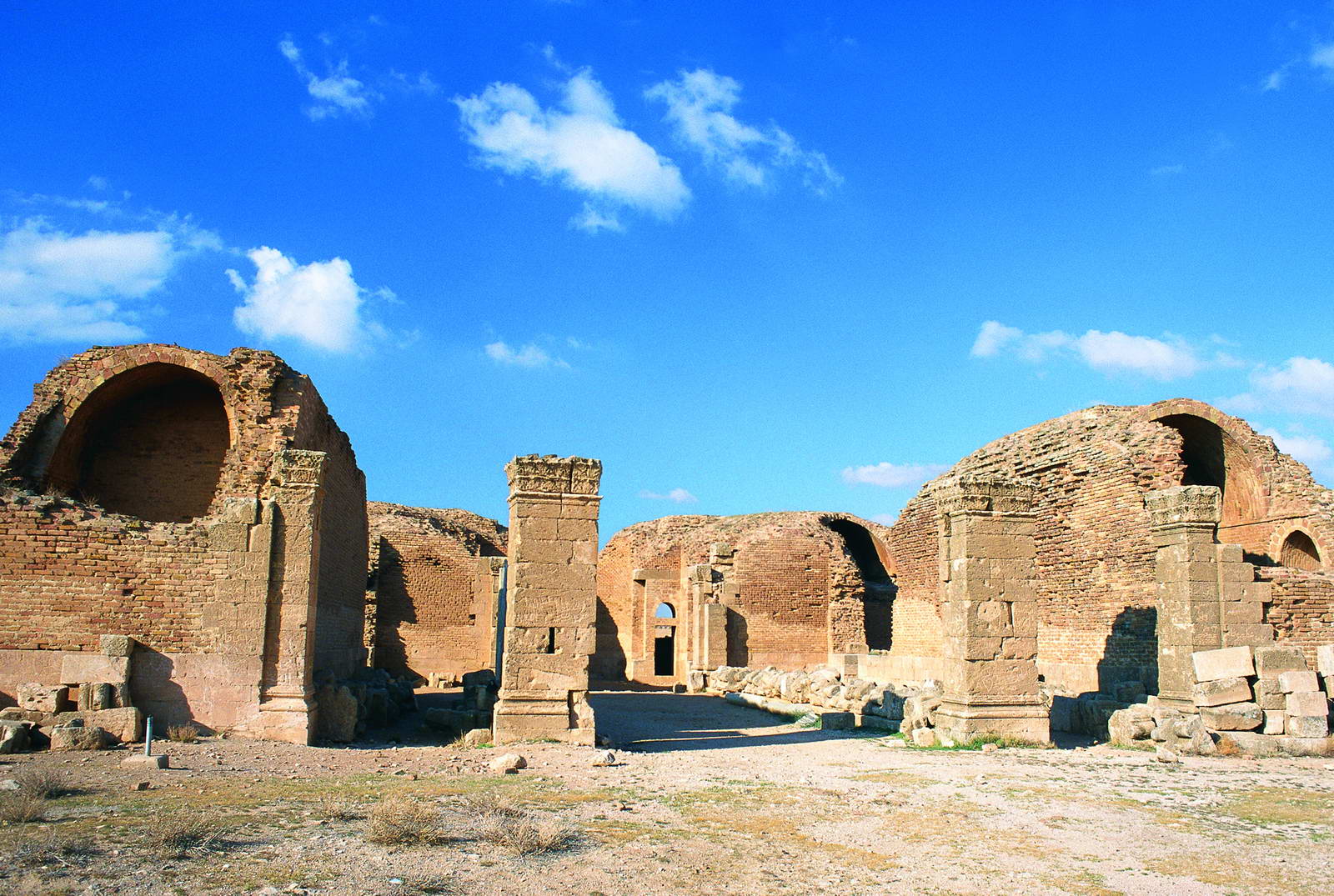 This is one of the finest or' the' Umayyad «desert resort pavillons.» The interior of this bathhouse reveals a breathtaking treasure of splendid sensuous frescoes from the mid-8th century. The buildings were constructed of limestone, yet the real attraction to Qusair 'Amra are the extensive frescoes. Hunting scenes with wild onagers being driven into a net trap by men on galloping horses; women in bathing scenes; athletes demonstrating their collective prowess in an outdoor setting; the goddesses of poetry, philosophy and history; musicians and dancers together with exotic birds and plants; and, finally, the famous «fresco of the six kings,» representing the rulers of the world, including the Byzantine Emperor and the Emperor of China. A female figure representing Victory, flanked by servants and peacocks, dominates the audience hall. This example illustrates the Umayyad use of borrowed iconography from Persian and Greco-Roman art. In the innermost caledarium is the small but magnificent «dome of heaven.» This is one of the first representations of the heavens on a domed ceiling. Central in the map is the North Star that is surrounded by the northern hemisphere and signs of the Zodiac. Survivors of the censorship of later, more puritanical periods, these frescoes reveal the brilliant eclecticism of early Arab/Islamic art. Little wonder that Qusair 'Amra was declared a Unesco World Heritage Site.